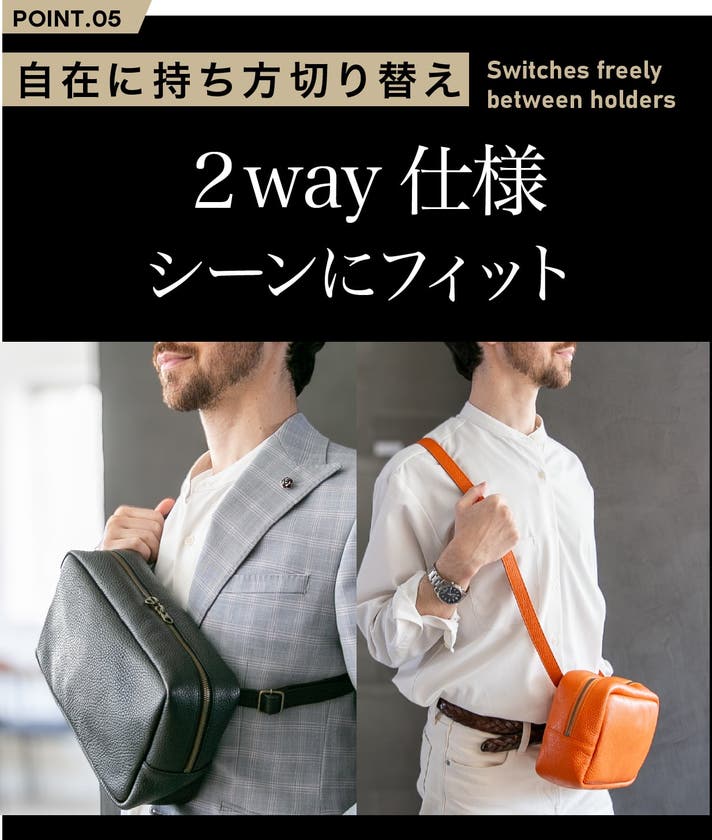 - 撥水機能を備えたイタリアンレザーで仕立てたBOX型ボディバッグは、雨や汚れを気にせず活躍