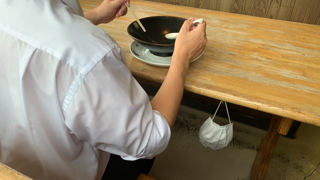 飲食店で飲食時にマスクを外した際のマスク置き場として
