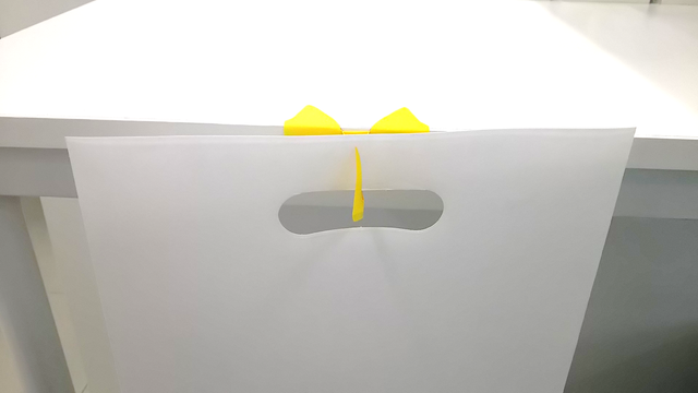 付箋を利用したアイデア商品で、レーザー加工する事により切り込みを入れ、日本古来の折り紙の要素を組み入れて立体的な出来上がりとすることで、どこでも手軽に組み立てが出来て、かつ衛生的にマスクをかけられる商品を作りました。