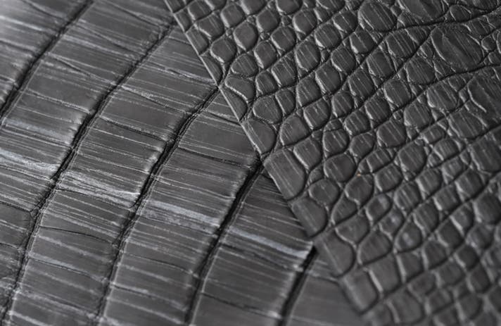 蝋をしみ込ませたブライドル仕上げのポロサスクロコダイル。ブルームで覆われた独特の風合いが魅力の希少素材です。