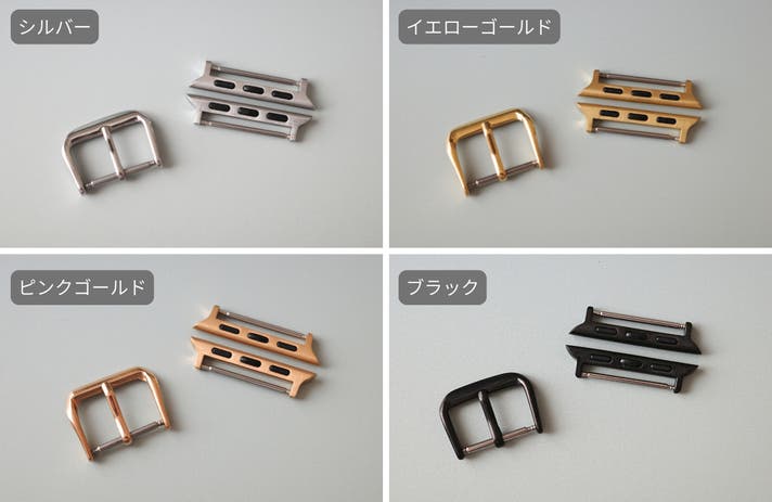 シルバー/イエローゴールド/ピンクゴールド/ブラックの4色をご用意しました。時計のケースカラーに合わせてお選びいただけます。