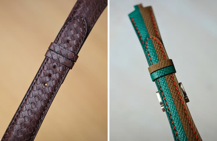今回、リターンで準備させていただく、「カラフルな裏地ラバーの時計革ベルト」では、仏メゾンでの製作経験や独自の製作技術を惜しみなく使用しております。