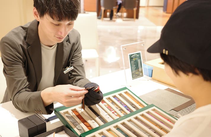 現在、オーダー会は「東京」「神奈川」「愛知」にて3ヵ月毎に定期開催を行っております。既に多くのお客様にORIGINEのストラップの美しさや着け心地に満足頂いております。