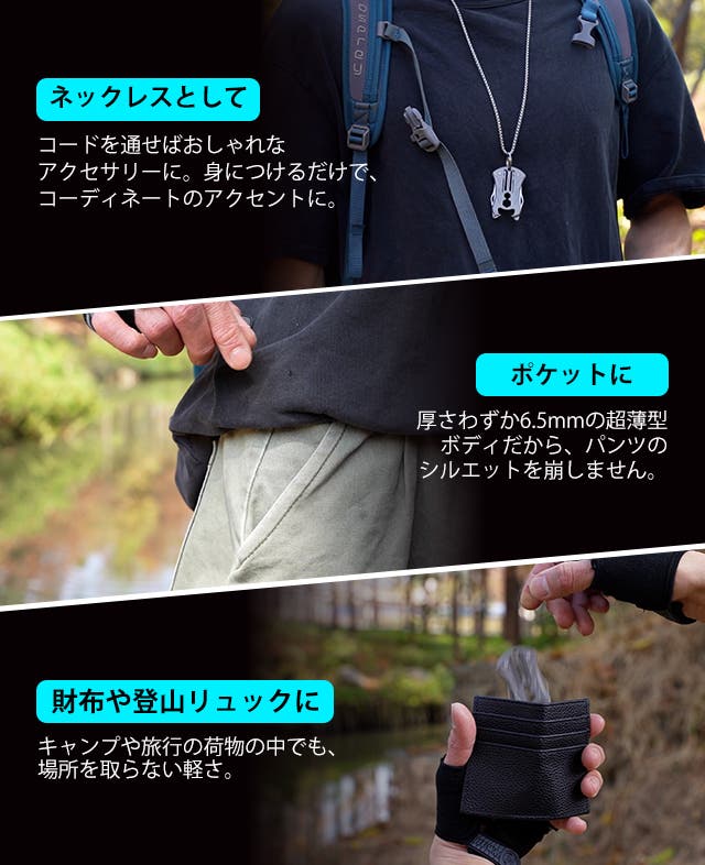 「Makuake(マクアケ)」は、実行者の想いを応援購入によって実現するアタラシイものやサービスのプラットフォームです。このページは、 プロダクトカテゴリの 「6.5mm超薄!携帯性と機能性を両立!8つの機能を凝縮したチタン合金マルチツール」プロジェクト詳細ページです。