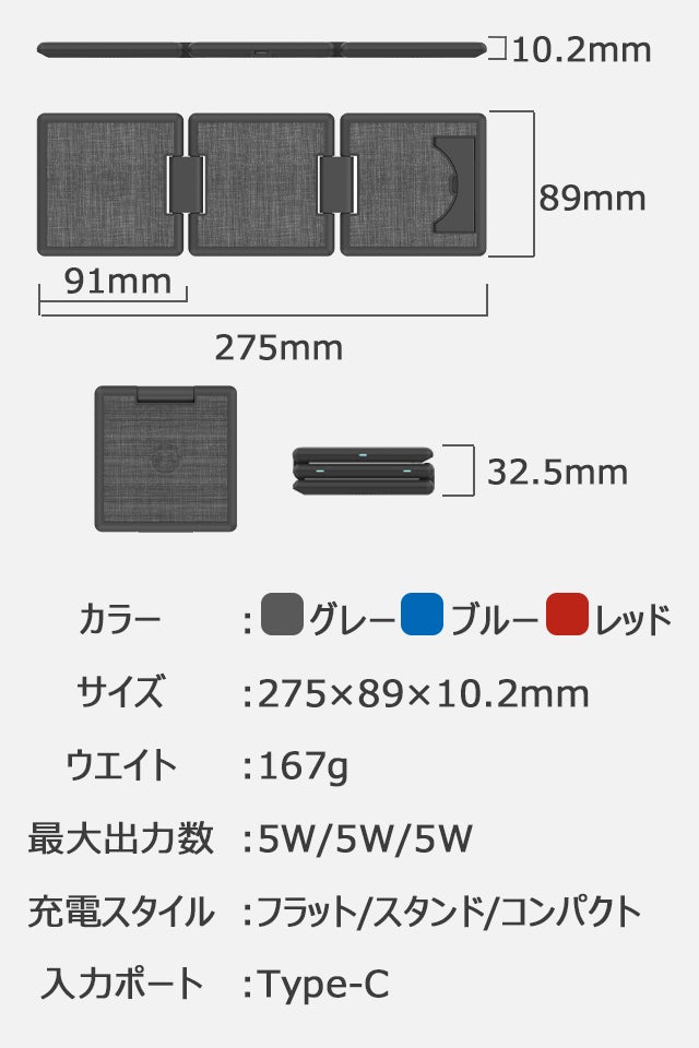 - Qi充電対応デバイス&AppleWatchを同時に3台充電できる!