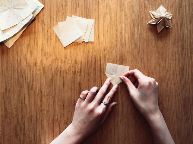 パズルのような折り方で、ホテルの特注照明シェードや工芸アクセサリーなど、プロダクトをデザインし、すべて手作業で製作する