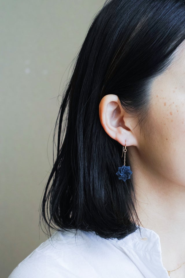 ※ピアスは4色からお選びいただけます(お任せも賜ります)/柿渋や顔料で染めた黒谷和紙(京都府指定無形文化財)修行したハタノワタルの和紙です