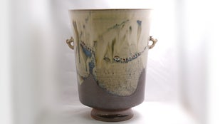 伝統工芸の花器を、現代の生活においてワインクーラーとしても使いやすいよう、サイズを再考し作り上げた作品です。陶器のワインクーラーは珍しく、大塩昭山としてもアタラシイ挑戦です。