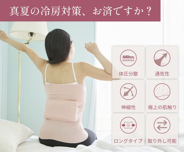 そこで「腹巻き腰まくら」では、胸元から腰までをしっかり包み込める「ロングタイプ」にしました。