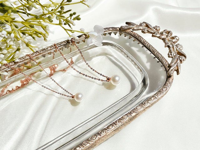 ジュエリーの特性上、肌に接触するほかありませんが、肌に塗ったローションや皮膚から生成される汗や皮脂、角質などが真珠の表面に付いてしまうため、このような汚れを柔らかい布で拭き取り、キレイな表面を維持するようにしてください。