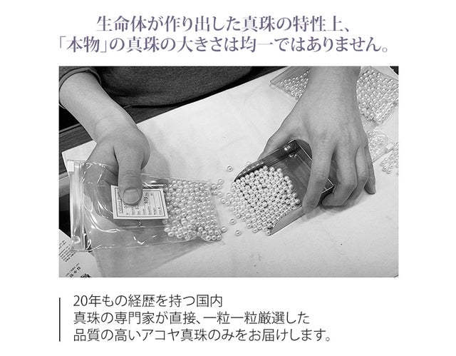 - 20年の経歴を持つ真珠の専門家が直接厳選した品質の高いアコヤ海水真珠を使用!
