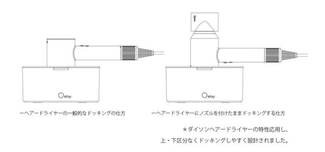 ドッキング方式のスタンド機能にアタッチメント収納まで一つですべてを解決するダイソン専用『Ostay Hair Dryer Dock』を体験してみてください。