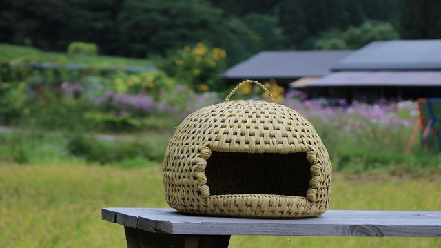 多いときで2~3mの雪が積もることがあるという豪雪地域のため、冬は外での作業が制限されてしまいます。『猫つぐら』はそんな冬の手しごととして、秋にとれたお米の藁を用いて作られていたキャットハウスです。