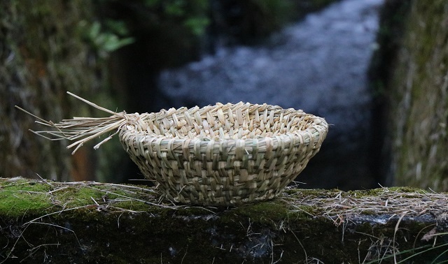 ※写真は猫なべつぐらのサンプルです。皆様へのリターンの完成品は藁の端(写真左側)が毛羽立たないように処理します。
