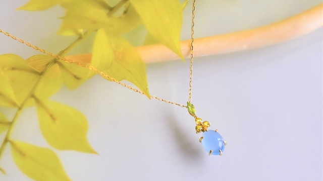 シーブルーカルセドニー/イエローサファイア/ペリドット ペンダント