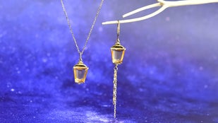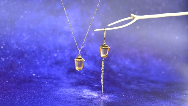 ライトアップされた美しいガス灯を美しくカットされたシトリンで表現しました。