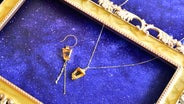 ガス灯ならではの形にカットされたシトリンが胸元を印象的に飾ります
