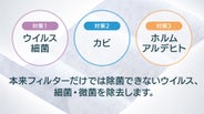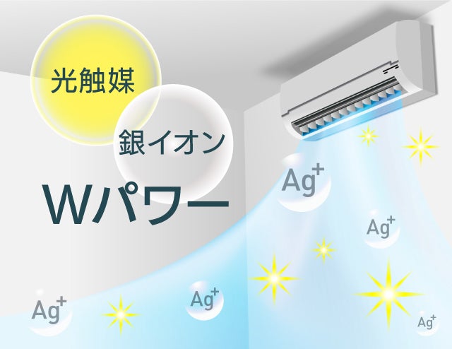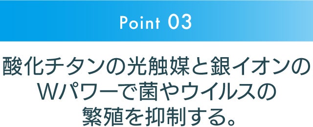 酸化チタンと銀のWパワーで、ウイルス、カビ、ホルムアルデヒドを除去。