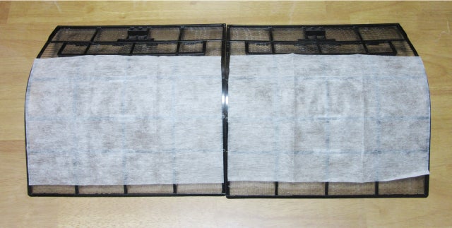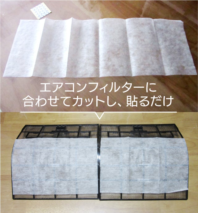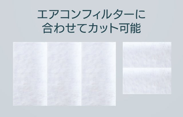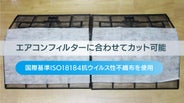 ご使用のエアコンのフィルターサイズに【OTiO抗ウィルスエアーフィルター】をカットし、付属のシールでは貼るだけです。