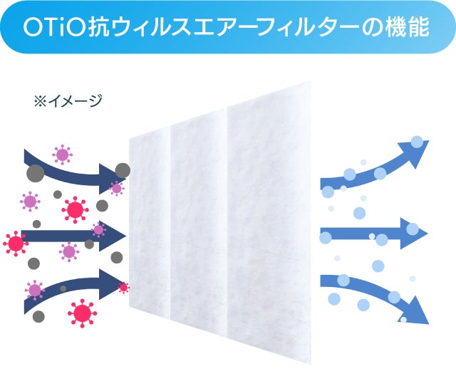 【OTiO抗ウィルスエアーフィルター】はエアコンのフィルターに貼り付けるだけで、エアコンの空気をキレイにします。