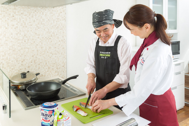 【男子厨房倶楽部 OTOKO NO TAKUMI】は、相手女性やご家族、お子さまと一緒に囲む食卓 楽しい団欒を彩るメニューの料理実習です。