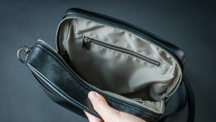 内装にステッチをいれることで内装がフワッと内側に広がりにくくなるので、ファスナーを広げたときに中身が見やすい設計にしました。