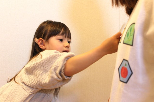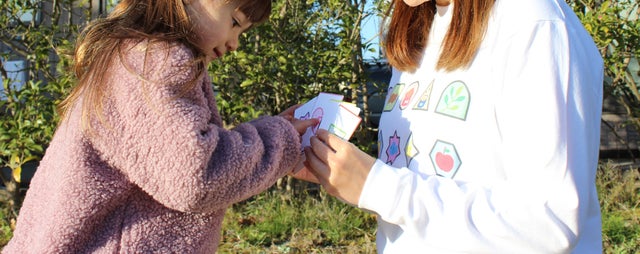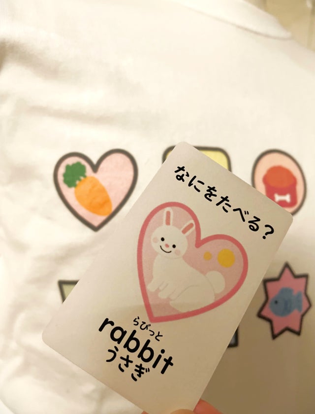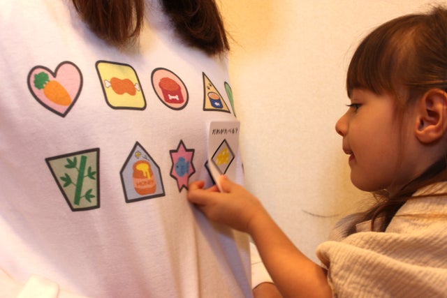▼子供が同じ柄のカードを見つけたら手に持ってTシャツに絵合わせ!