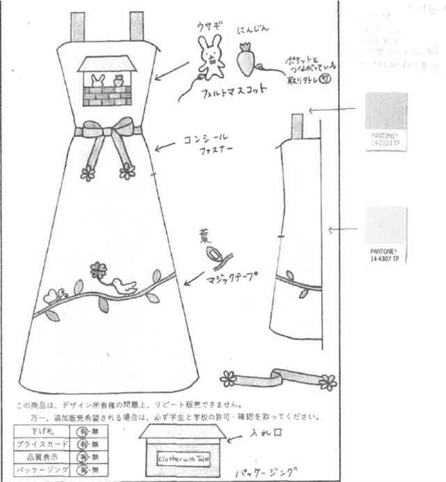 育児に関する多くの悩みの中で、時間つぶしに困る外出先での待ち時間に目を付けて、外出先で子供が遊べる服を作ることにしました。