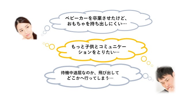 また外出先、外食時のちょっとした待ち時間では、周りものを触って落としてしまう、どこかへ走ってしまう等育児に励む方々のお話しを聞き、
