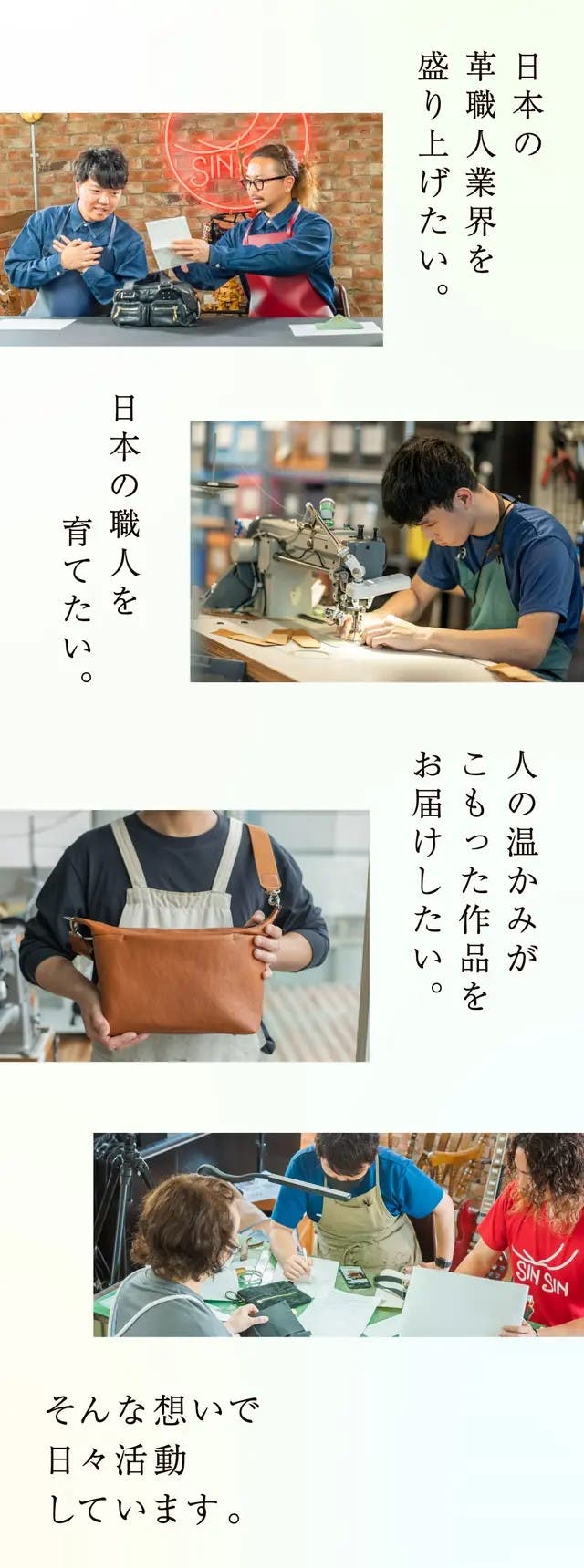 僕たち新進工房は若手革職人のグループです。斜陽産業と言われている日本の革職人業界を少しでも盛り上げたいと考えています。