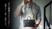 5万本以上のアイテム販売して、お客さまからいただいた様々なご意見を基に、職人である私たちが一丸となって完成させたのが『大人革袋ショルダー』です。