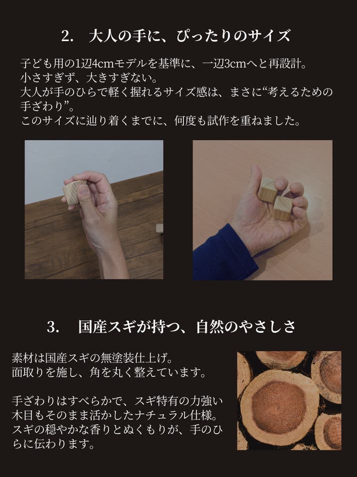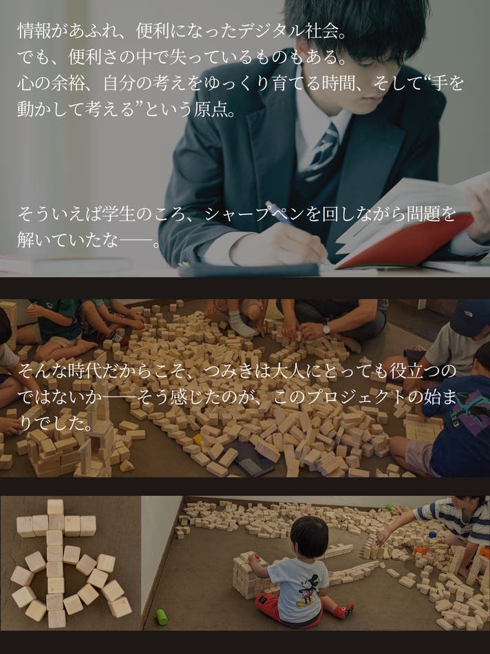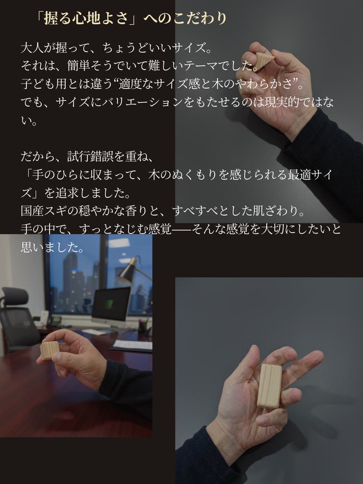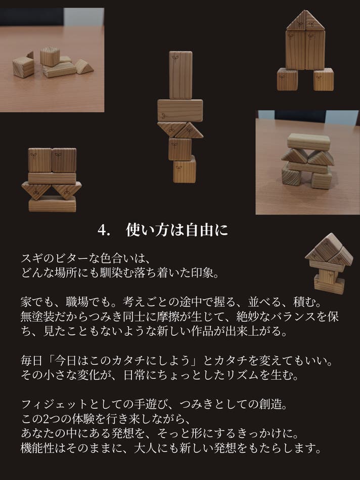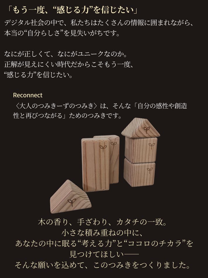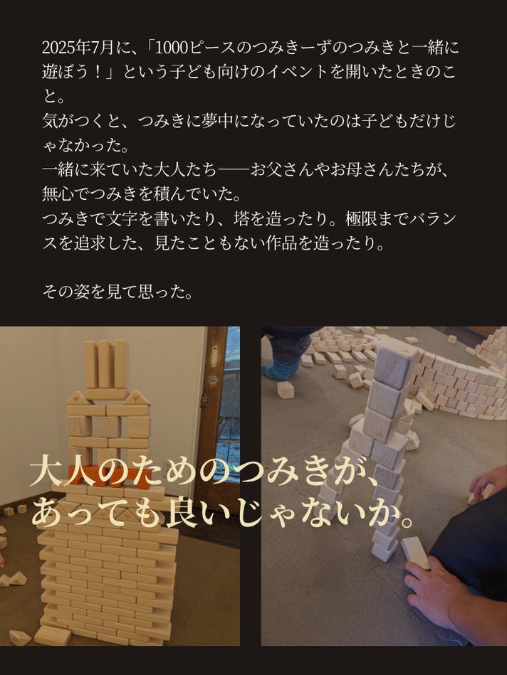 大きな可能性を秘めたこの小さなつみきが、あなたの日常に寄り添うことを願っています。