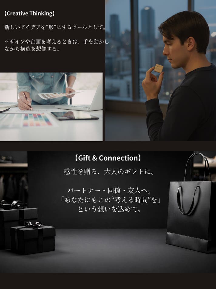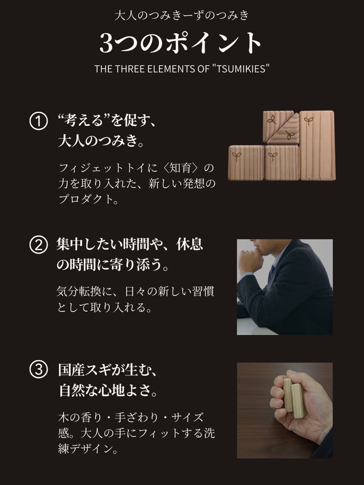 - フィジェットトイに、ココロのチカラ(知育の効果)を取り入れた全くあたらしい大人のつみきが誕生!