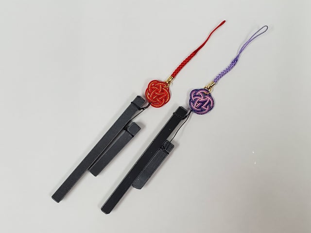ドアや車に吊るして身近に音色を楽しめる和風赤色の水引付きチャーム。