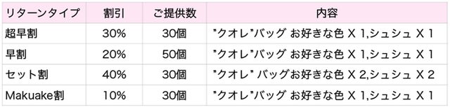 この企画のために制作したナヨレアーリ・オリジナルプリント柄シュシュ5色(非売品)がバッグ一個につき一点ついています。