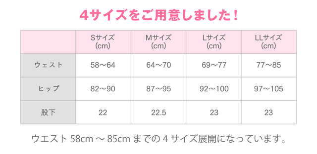 【S】ウェスト 58~64cm ヒップ 82~90cm 股下 22cm