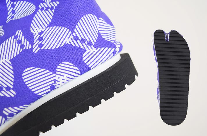おうちスニーカーでは、本物の足袋との相性を徹底的に追求し、プロランナーのシューズを参考に試行錯誤を繰り返してオリジナルソールを開発。