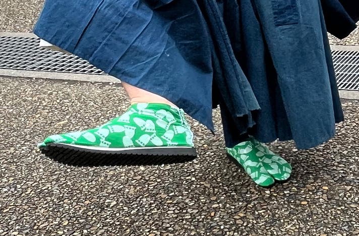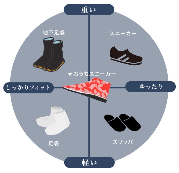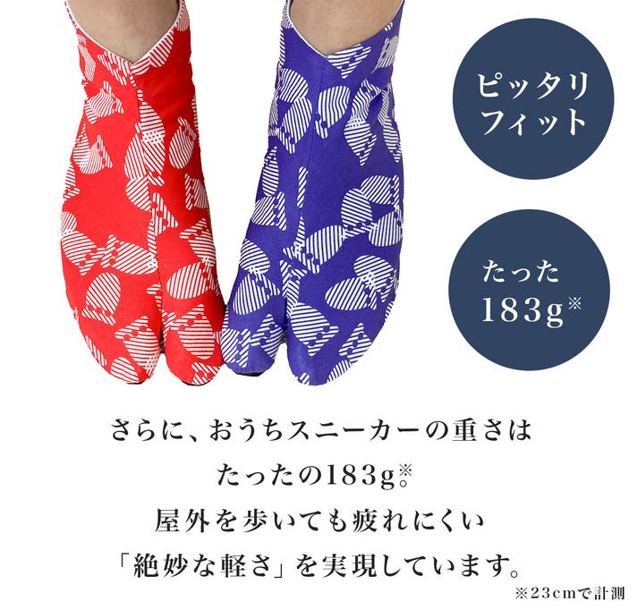 おうちスニーカーは、本物の足袋にスニーカーのソールを付けた新感覚シューズ。