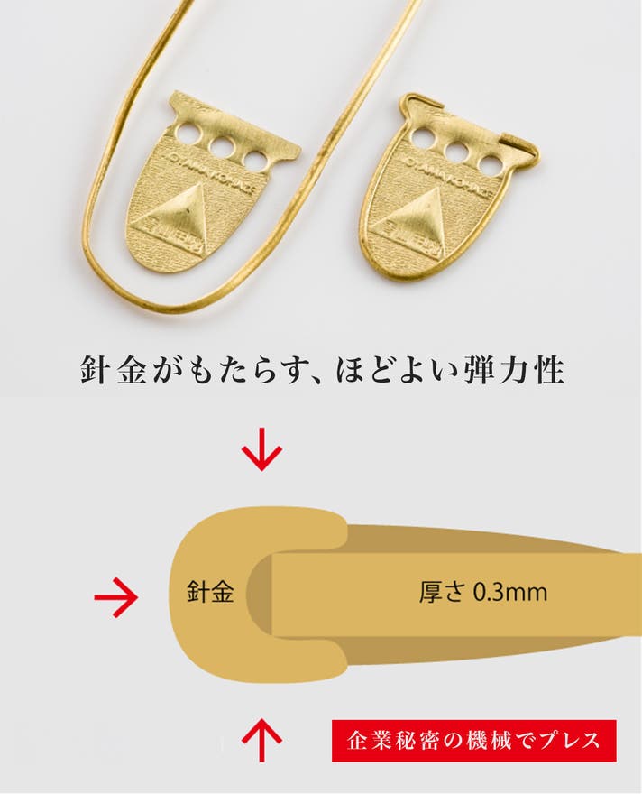 「こはぜ」に針金を巻いているのは、ほどよい弾力性を生み出すため。かすかに気づく程度のたわみが、「留めやすく、外れにくい」すぐれた性能を与えます。