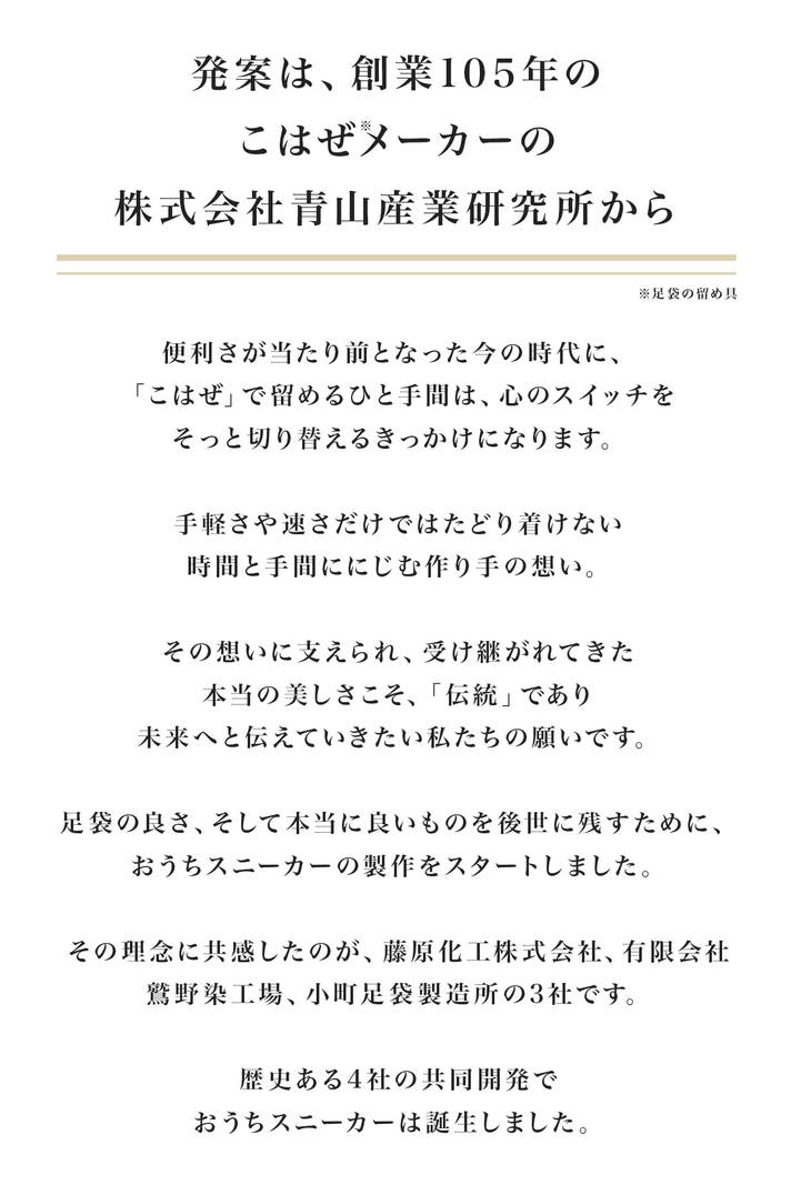 そんな日本の「伝統文化」であるこはぜの魅力を次の世代の方々へも継承していきたいという想いから、様々な試行錯誤を繰り返していた時にふと思いついたのが、こはぜの代名詞でもある「足袋」を現代のライフスタイルでも生かせるようなアレンジができないかというアイデアでした。