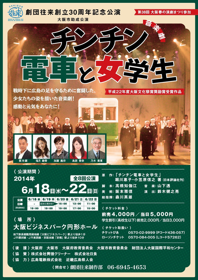 この音楽劇『チンチン電車と女学生』は平成22年6月、大阪での公演が初演。