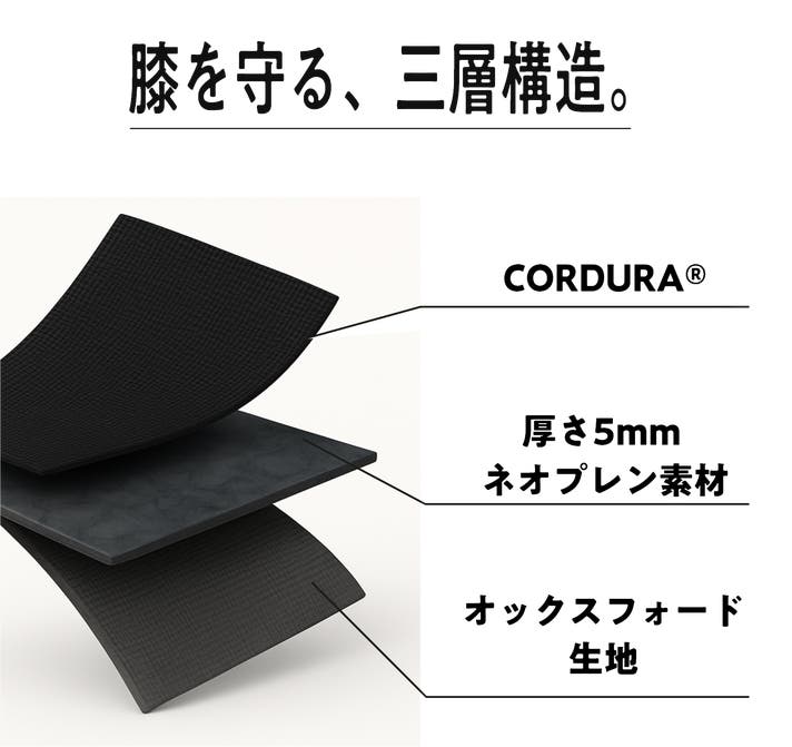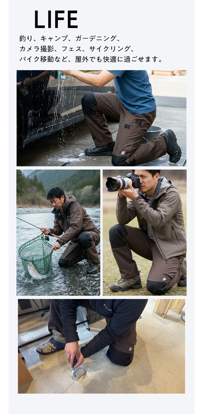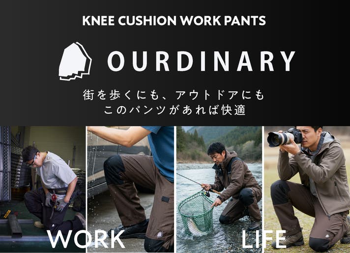 私自身、福井の自然の中で趣味の釣りや写真撮影、そして日々の商品開発に没頭する中で、何度も膝をつく場面に直面してきました。そのたびに感じる痛みや汚れ、そして「いかにも作業着」という格好で街へ出ることへの抵抗感。これらを解決し、趣味も仕事も日常も、すべてをシームレスに繋ぐ1本を作りたいと考えたのが始まりです。