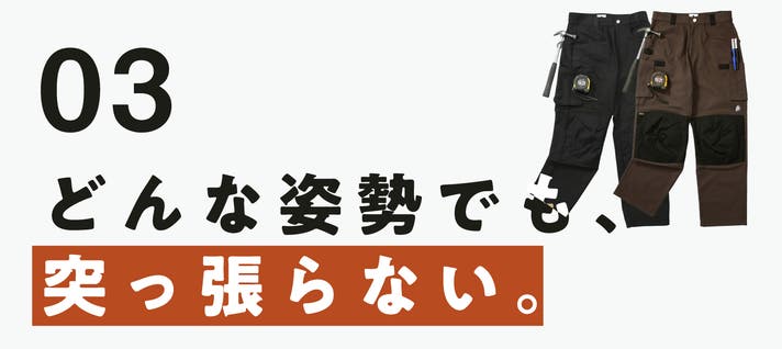 - 日常から趣味までこれ1本。野暮ったさを排除したシルエットで、仕事も日常もシームレスに繋ぐ。