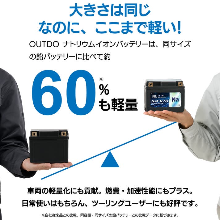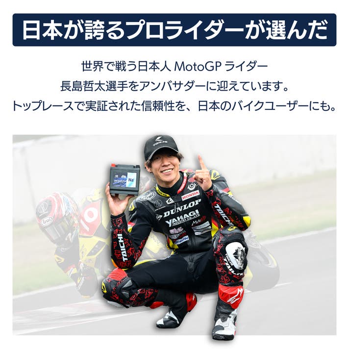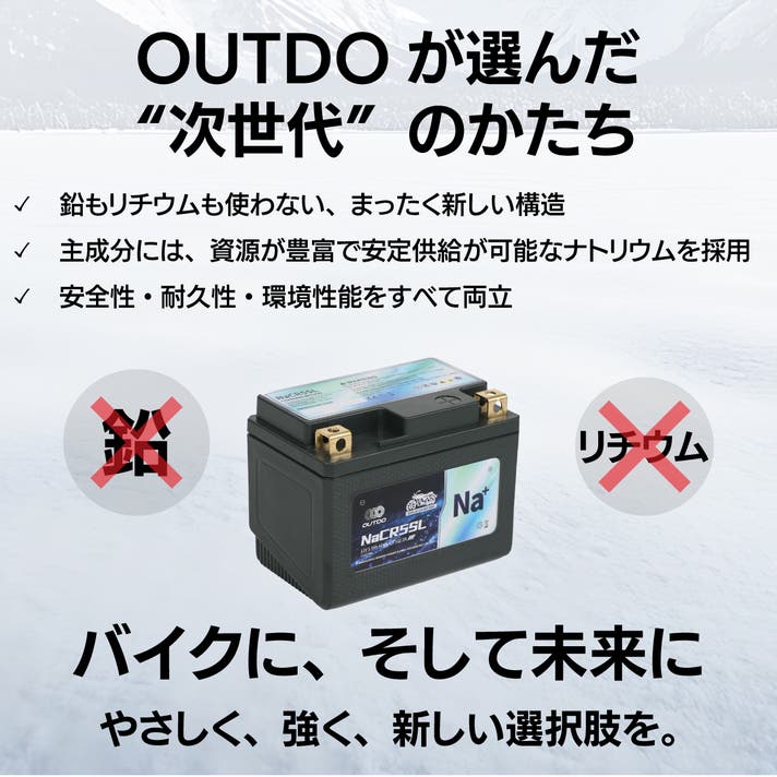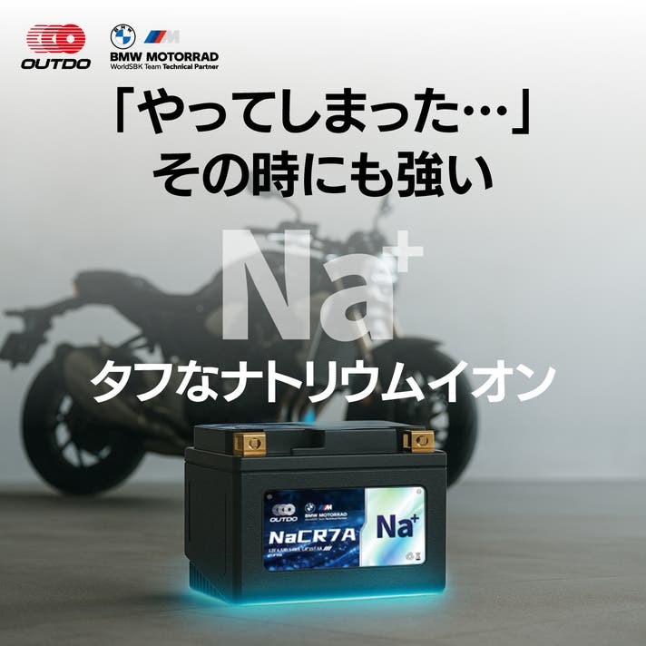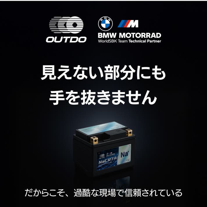 MotoGP™や世界耐久選手権といった過酷な環境で走り続けてきた彼が、パフォーマンスと信頼性を重視して選んだのがOUTDOのナトリウムイオンバッテリー。