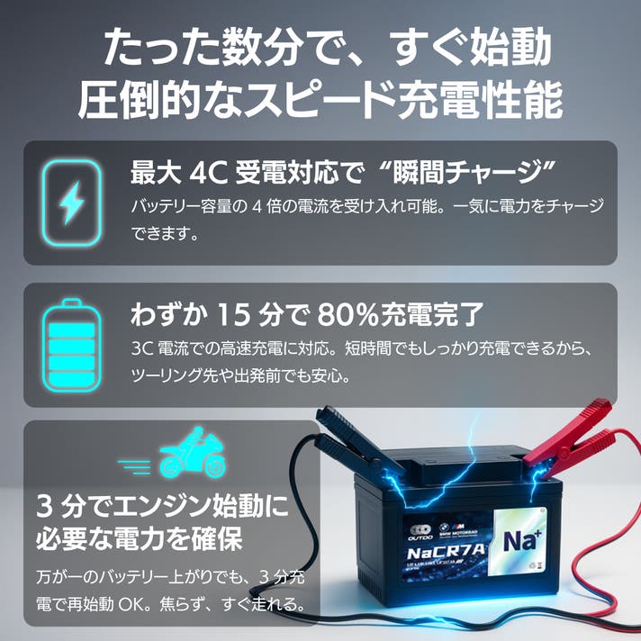 実際に、「BMW Motorrad Motorsport」WorldSBK Teamのレースマシンにも採用されており、激しい振動・高温・急速な電力消費といった極限状態でも、安定した電力供給を実現。