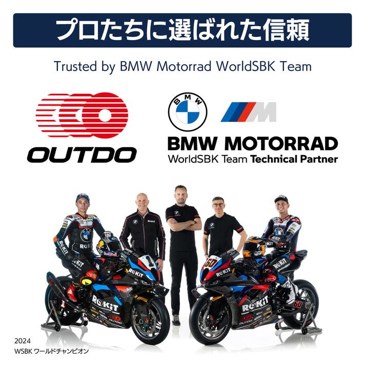 OUTDOは、世界的なバイクブランド「BMW Motorrad Motorsport」WorldSBK Teamの公式テクニカルパートナーとして認定されています。