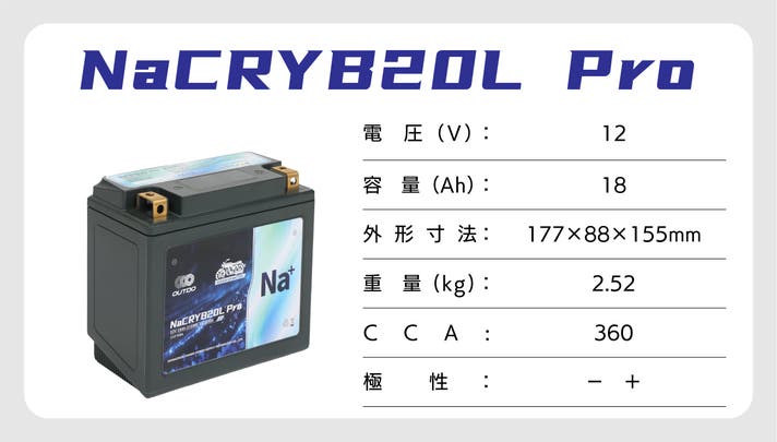 【マクアケ割35%OFF】 NaCRYB20L Pro 12V 18Ah ×1