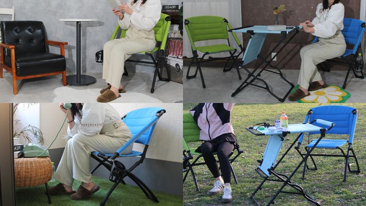 今回ご紹介するのは、2段階高さ調節が可能な折りたたみ椅子と、椅子としても使える多機能テーブルの新シリーズです。