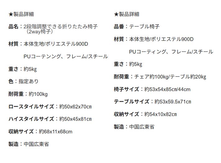 2段階調整できる折りたたみ椅子(2way椅子)単品