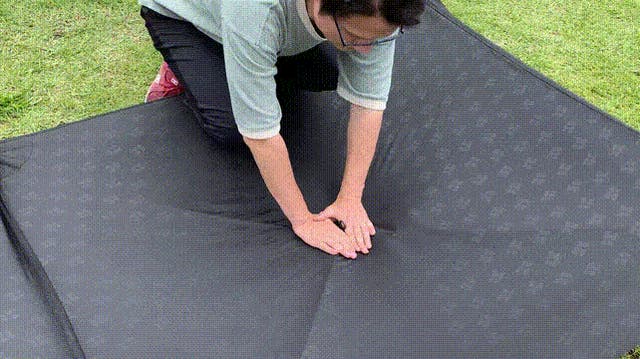 展開すると片側が弧を描くように膨らんでおり、空力的に風を分散させることで倒れにくくなります。内側は少し凹んでいるため、会話の声や焚き火の音が反響して、より良い音響効果が得られるという一石二鳥の仕様です!
